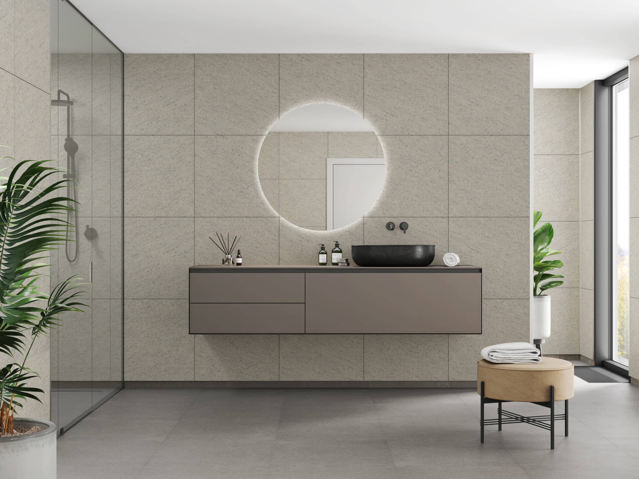 Rauhallinen ja ajaton valinta, joka sopii sekä moderniin että klassiseen kylpyhuoneeseen. Yhdistyy kauniisti luonnonmateriaaleihin, maanläheisiin sävyihin ja tummiin kontrasteihin.